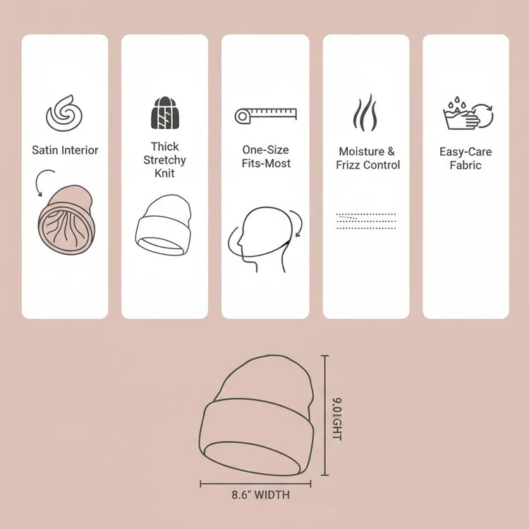Experience ultimate comfort and style with this cozy beanie designed to protect your hair while keeping you warm. The satin lining ensures your hair stays smooth and frizz-free, making it an essential accessory for any season.